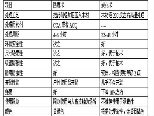 防腐木是目前市场广泛使用的、为提高木材使用寿命经过防腐剂防腐处理的木材。防腐处理的药剂种类较多,市场上采用的主要有CCA防腐木和ACQ防腐木两种。目前国内市场大量使用的是CCA防腐木。